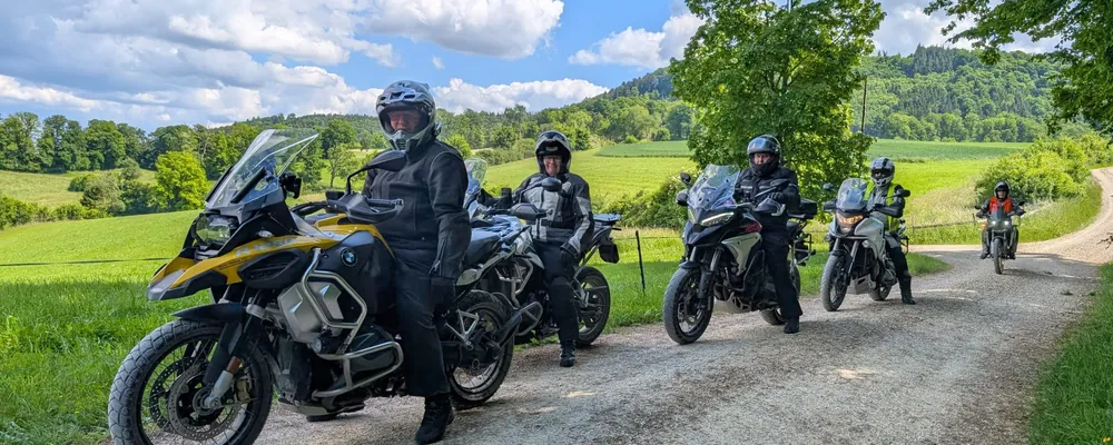 Bevor wir in der zweiten Tageshälfte befahrbare Schotterstrassen erkunden, trainieren wir verschiedene Enduro-Bremsübungen sowie das kraft- und gelenkschonende Aufstellen einer Reiseenduro.