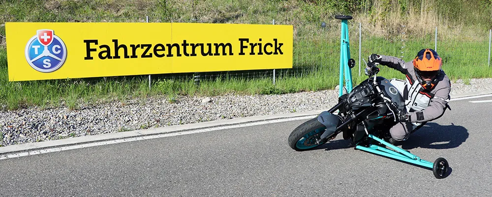 Erlebe mit dem Schräglagenmotorrad im TCS Fahrzentrum Frick eine ganz neue Dimension des Kurvenfahrens und setze das gewonnene Vertrauen direkt in dein eigenes Motorrad um.