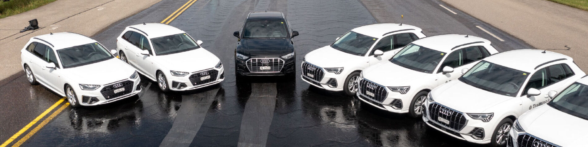 vor Hindernissen, Kurvenfahren, Kurvenbremsen, ** Schleuderplatte ** zeigen wir