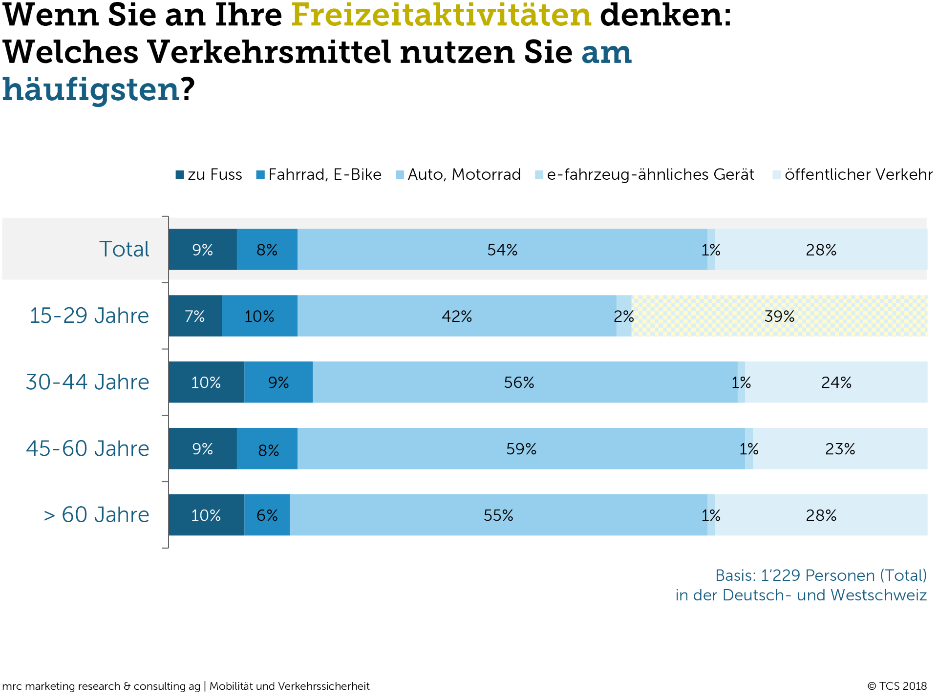 Bei den unter 30-jährigen sieht man ganz klar einen anderen Fokus auf das Thema «Unterwegssein». Das Auto steht völlig im Hintergrund. Gemäss einer Studie des Institut mrc bewegen sich 39% mit dem ÖV fort, 10 % mit dem Velo und ganze 9 % haben andere Fortbewegungsmittel (Skateboards, Scooter etc.) angegeben. Umweltschutzthemen mögen die eine Erklärung sein; Sparsamkeit, Überzeugung oder Spass eine andere. Vor allem in stadtnähe führt der tägliche Verkehr zu grosser Belastung, so dass Alternativen zur Fortbewegung hier ideal einsetzbar sind.
