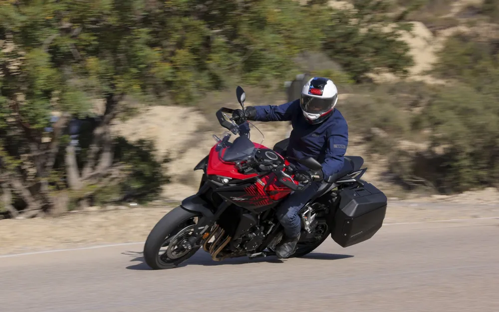 Die Sitzposition von Pilotin oder Pilot an der breiten Lenkstange ist moderat aktiv; nicht so aufrecht, dass der Hintern kneift, nicht so gebeugt, dass es Nacken oder Handgelenke strapaziert. So ausgewogen positioniert, stürzt man sich gern ins Kurvenparadies – im Fall der Testfahrt in den Hügeln bei Benidorm an der spanischen Costa Blanca.