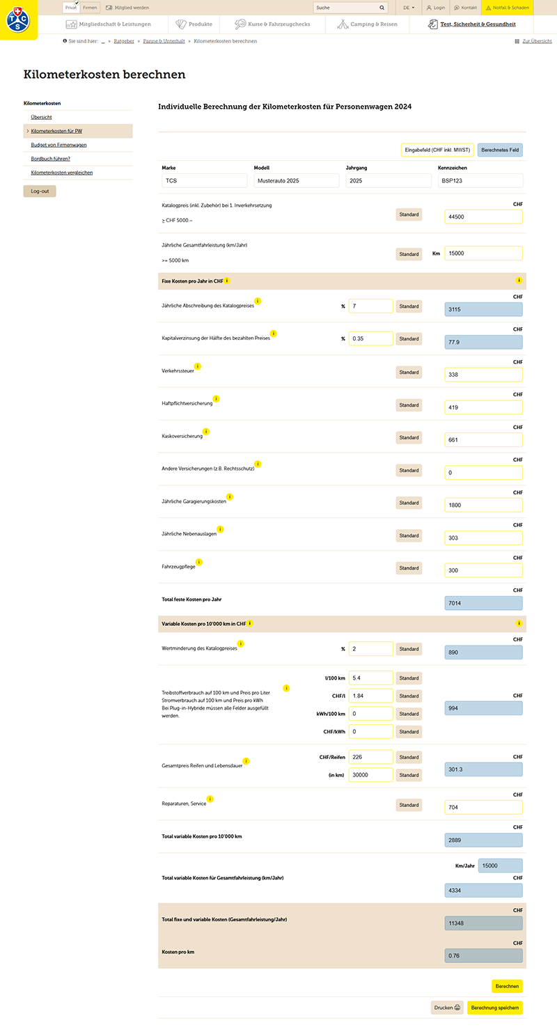 Bis 2024 konnten Sie beim TCS als Mitglied für CHF 19.90 plus CHF 5.– Porto (Nichtmitglieder CHF 24.90 plus Porto) einen USB-Stick mit der Berechnungs-Software bestellen. Neu können Sie hier innert weniger Augenblicke für CHF 14.90 mit Kreditkarte das Gleiche und sogar noch mehr machen. Der Zugang zum Tool ist jeweils bis Ende März des Folgejahres gültig.