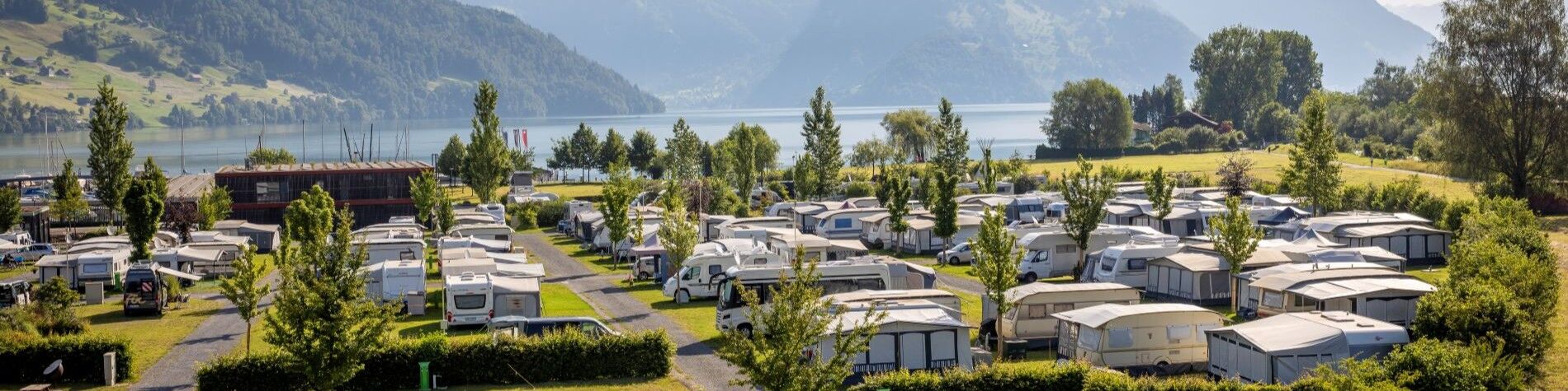 The modernised TCS Camping Buochs Vierwaldstättersee is located directly on the shores of Lake Lucerne in the heart of Central Switzerland. It is surrounded by the magnificent Central Swiss Alpine panorama. Whether you want to enjoy a bathing, hiking or active holiday, you will be sure to unwind and enjoy a variety of activities here. The campsite is located close to the north-south route of the A2 motorway and is therefore also ideal as a stopover on your journey south.