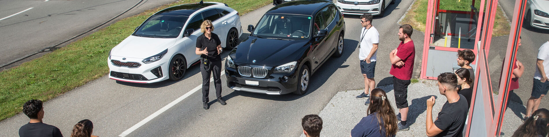 Nous vous proposons, dans une atmosphère détendue, une journée passionnante et riche en informations autour des questions de la conduite et de la sécurité routière. A partir des thèmes à traiter, nous avons créé une journée de cours variée et orientée vers la pratique, qui vous mènera à votre objectif avec joie et plaisir. Fidèle à notre devise : „Apprendre par l’expérience“.