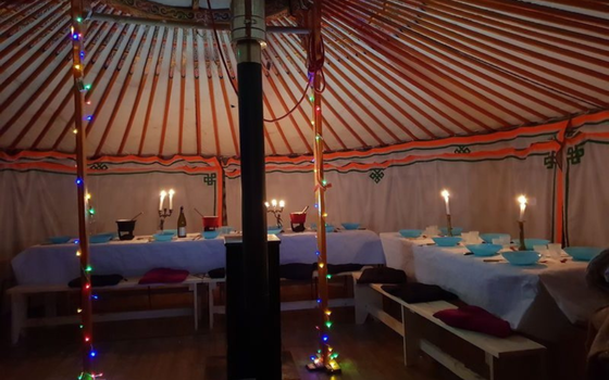 Après environ une heure de marche, place au réconfort : une fondue savoyarde servie sous une yourte chauffée, accompagnée d’un verre de vin et d’un dessert.