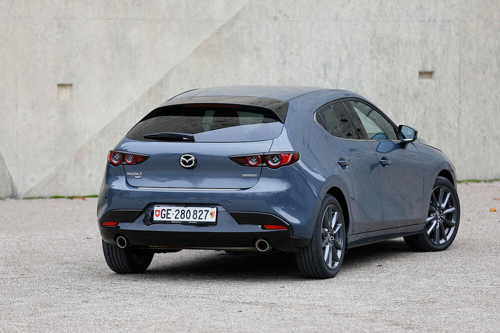 Dans la pratique, la Mazda3 bénéficie déjà d’un couple appréciable à très bas régime. Ce n’est pas aussi spontané qu’un bloc turbo, mais autorise une conduite onctueuse en agglomération. Les reprises sont suffisamment consistantes sur les régimes intermédiaires – l’effet diesel –, tandis qu’il est possible de pousser haut dans les tours – l’effet essence. Cela étant, les montées en régime apparaissent un peu bridées en regard d’un groupe essence classique. Bien que disposant en théorie de 180 ch, ce moteur Skyactiv-X demande à être mené de manière fluide afin de profiter au maximum de la combustion en mélange air/essence pauvre. Pas toujours excitant, mais on est récompensé à la pompe.