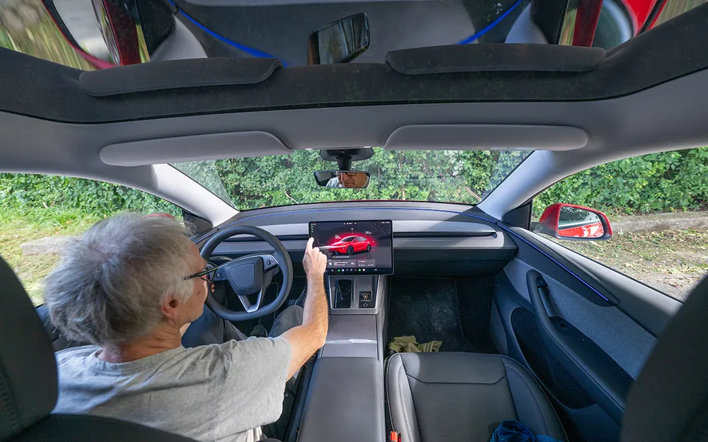 Ce concept minimaliste contribue à maintenir les coûts de production à un niveau bas. Mais alors que d’autres constructeurs proposent des écrans intégrés et orientés vers le conducteur, Tesla, le pionnier des écrans tactiles, continue de planter une grande tablette au milieu de la planche de bord, comme en 2012 dans la Model S. Mais de quoi d’autre aurait-on besoin, à part peut- être d’un indicateur de vitesse dans le champ de vision, derrière le volant ou sur le pare-brise? En lieu et place de sélecteur de vitesses, un curseur virtuel s’affiche à l’écran. Pas de risque de distraction, puisque la voiture est à l’arrêt quand vous sélectionnez le sens de marche. Et puis le nouveau Model Y propose une nouvelle astuce: après une manœuvre roues braquées, il spécule sur le fait que le véhicule repartira dans l’autre sens et enclenche automatiquement la vitesse. Le menu est bien structuré, mais les textes à lire, souvent en petits caractères, constituent indéniablement une source de distraction.