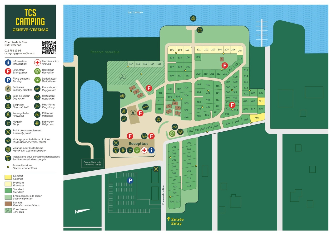 • Pagamenti in campeggio: contanti (CHF ed EUR), Visa, Mastercard, Reka, Postcard, Maestro, Twint
